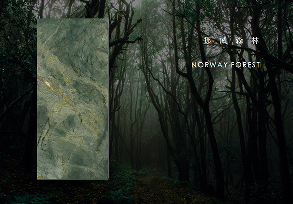 珍稀奢石肌理融合時尚,挪威森林將自然之美凝練在瓷磚的方寸之間,一片葉痕,一抹綠境,充滿了自然的氣息,于衛(wèi)浴空間中營造靈動、舒適的森林秘境,沐浴心緒。